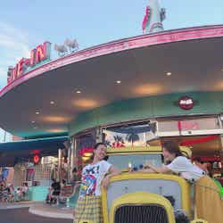 舟山と柴田の二人もさっそく入り口近くのグッズショップでミニオンTシャツにヘッドアクセサリーを購入し、USJ夏コーデで楽しむ準備は万端。まず体験したのは「ウォーター・サプライズ・パレード」。恒例となった夏の名物パレードだが、今年はさらにフィーバーし、びしょ濡れ度がUP。二人も「ウォーター・シューター」での水かけバトルに参加するが、頭上や背後から大量の水があらゆる場所から放たれ、豪快で爽快なびしょ濡れに。