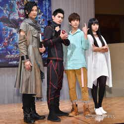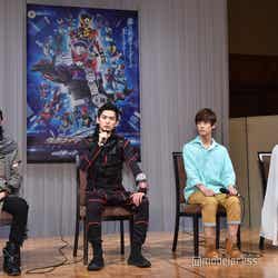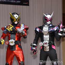 同会見には、50年後の未来からやってきた戦士・明光院ゲイツ(みょうこういん・げいつ)/仮面ライダーゲイツ役の押田岳、50年後の未来からやってきた謎の予言者ウォズ役の渡邊圭祐も出席した。(modelpress編集部)