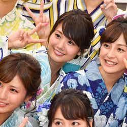 フジテレビ女子アナウンサーで結成された「お台場ワンガン娘」と男性アナウンサーによる「四代目オマツリ男アナ」が8日、同局にてパフォーマンスを初披露。お披露目後に行われた囲み取材には、山崎夕貴(※「崎」は正式には「たつさき」)アナ、榎並大二郎アナ、「お台場ワンガン娘」でメインボーカルを務める永島優美アナ、堤礼実アナ、永尾亜子アナ、杉原千尋アナが出席した。