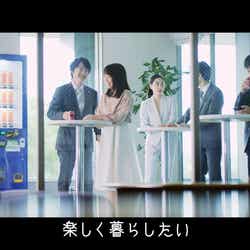 CMと同様に働くサラリーマンやOLを演じる5人の生き生きと頑張る姿が映し出され、それぞれが「リンダリンダ」を熱唱する今回の動画。前向きになれる歌詞を力強く歌う姿が印象的で、普段は聞けない5人の歌声が楽しめる。