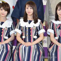 また、今回コラボするもの以外で、興味がある日本の伝統的なものを尋ねられると、桜井は日本舞踊を挙げ「この間やっていた舞台で、日本舞踊の家元の女優さんとご一緒して、間近でずっと仕草を見ていたんですけど、すごく綺麗だったんですよ。一応ダンスをやっているので(笑)、人よりちょっと仕草が綺麗だったら目立てるチャンスがあるんじゃないかなと思ったので、日本舞踊が気になりますね」と打ち明け、袴姿で弓道をやることに憧れているという秋元は「必殺技で『ずっきゅん!』というのがあって、人のハートを撃っているので、実際に撃てるようになったらカッコいいかなと思って。そろそろガチのほうに行きたいな」と笑顔を見せると、若月から「そろそろ!?それは止めるわ!」と突っ込まれて笑いを誘う一幕も。