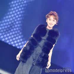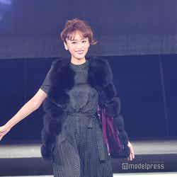 スペシャルゲストとして同イベントに初出演した近藤。ブラックのドットワンピースにファーベストを合わせた秋冬ファッションで登場した。