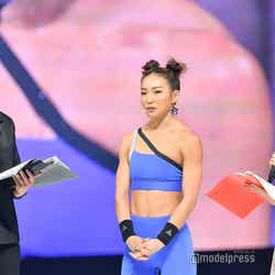 AYAの引き締まったウエストを目の前に「素晴らしいですね。ため息でますね。バッキバキ」と司会の敦士も惚れ惚れ。観客からも感嘆の声が上がっていた。
