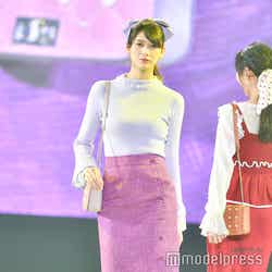 ほか、中条あやみ、池田美優、河北麻友子、新川優愛ら人気モデルが登場。来場者とモデルの距離を近づけ、モデルが目の前を歩くような臨場感あふれるステージにするため、ランウェイの一部をあえて低くした独自のステージをウォーキングした。中川大志&唐田えりかが記念撮影