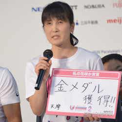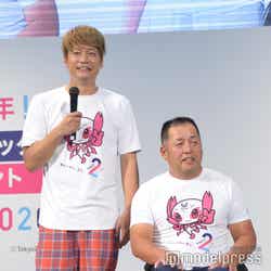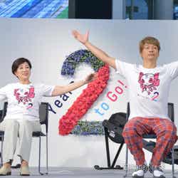 イベントには小池百合子東京都知事のほか、アスリート勢も集結。アスリートたちが2年後に向けての誓いをフリップに書いて宣言する中で、ボートの前田大介選手が「10キロ減量」を目標の一つに掲げると、香取は前田選手のフリップをおもむろに手にして「僕も10キロ減量して2年後応援したいと思います!」と宣言し、会場の笑いを誘った。
