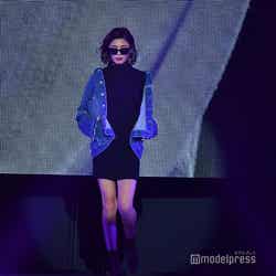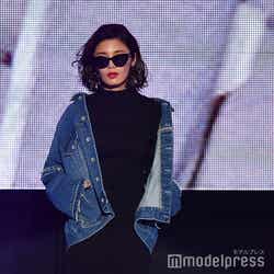 ほっそりした美脚と小顔が際立つサングラス姿でクールなオーラを放った。