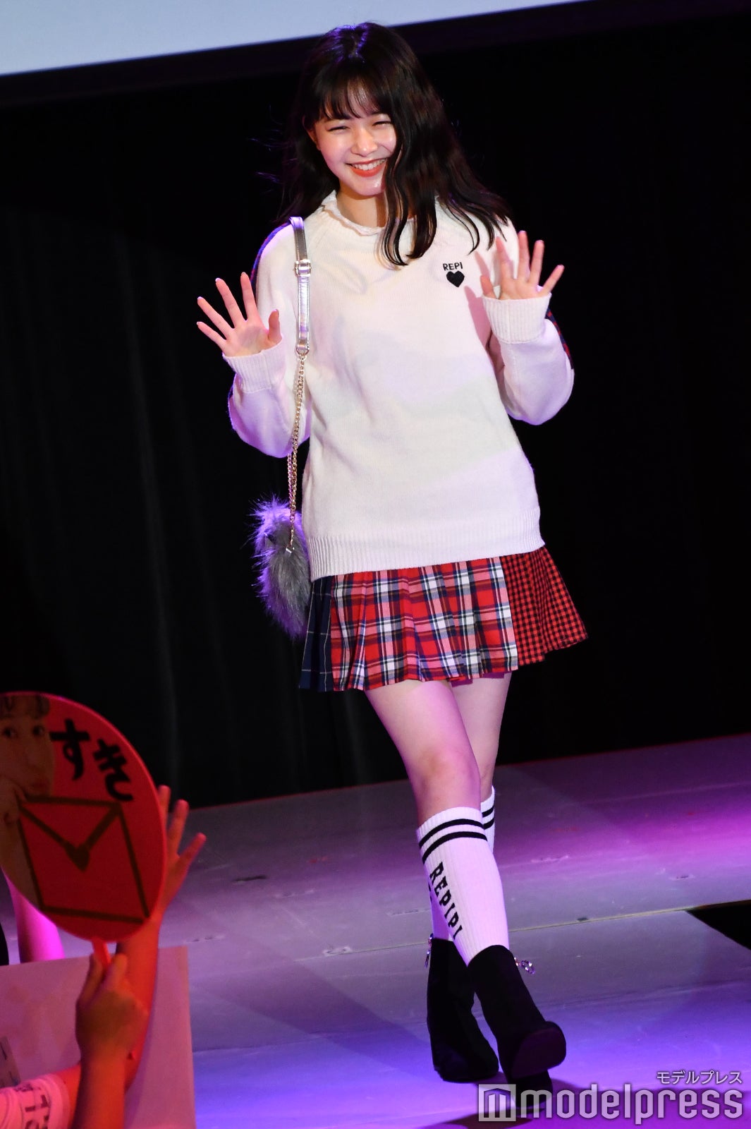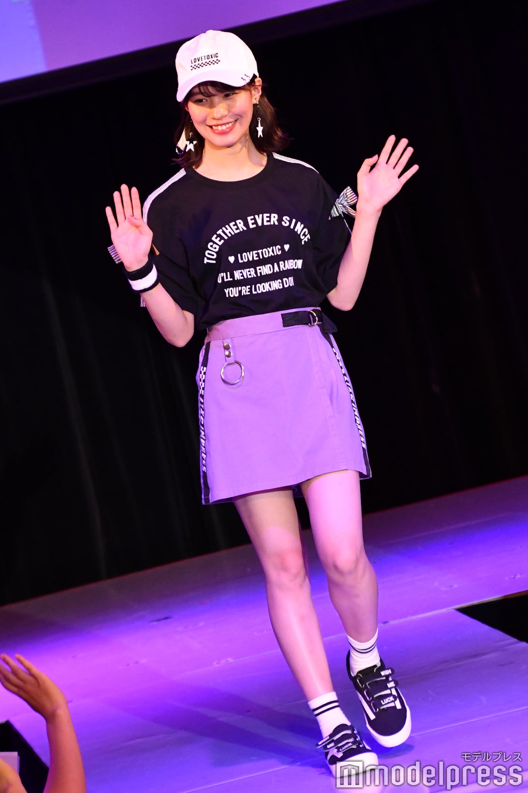 イベントは、ファッションショーで幕を開けた。久間田はトップバッターとしてステージセンターに姿を現すと、客席にいったん背中を向けてから、スカートをはためせながら振り向き、満面の笑顔。会場が熱狂し、特効の演出で紙テープが舞い降りる中、ウォーキングを披露。ランウェイ先端で片手で投げキッスをファンに贈り、盛大にイベントの幕を開けた。