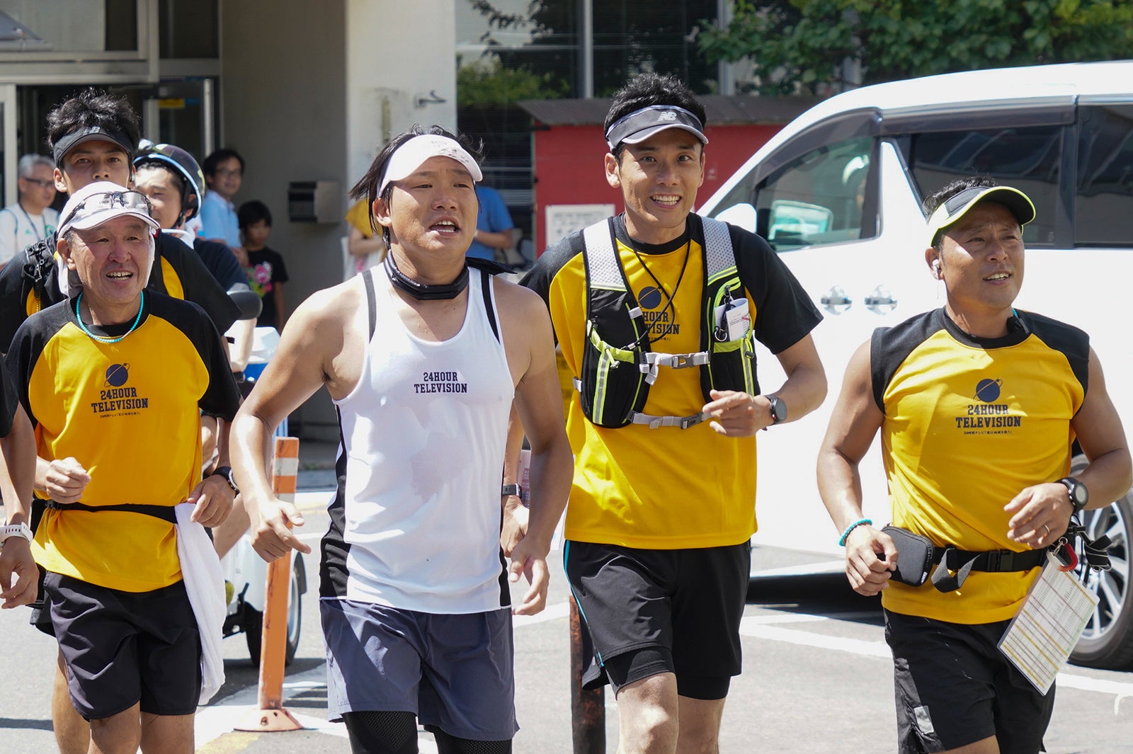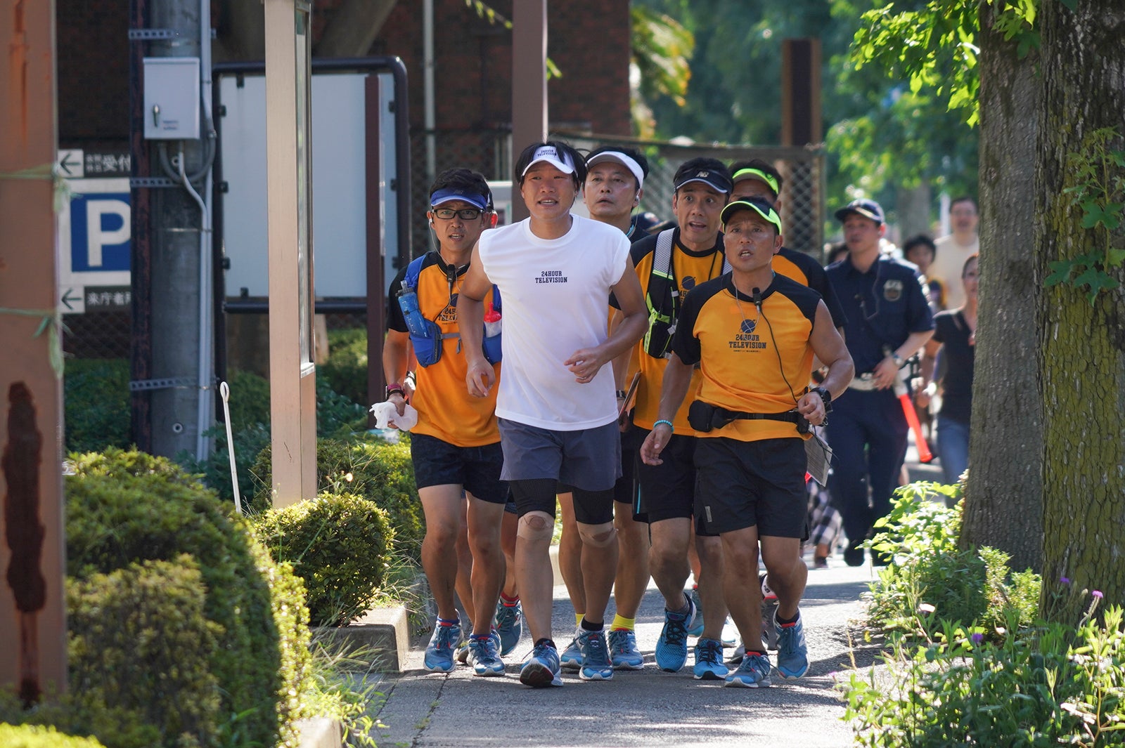 猛暑の中、辛そうな表情をみせつつも、沿道の声援に笑顔で応えていたみやぞん。最後は左右に蛇行しながらも気力で駆け抜け、集まった観客にお辞儀してから日本武道館入り。相方のあらぽんと、みやぞんの最愛のパートナーで心の支えである愛犬・ラブちゃん(9歳)に迎えられて、涙ながらにゴールした。