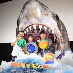 タレントの鈴木奈々、お笑いコンビ・FUJIWARAの原西孝幸、藤本敏史が27日、都内で行われた映画「MEG(メグ)ザ・モンスター」(9月7日公開)のPRイベントに出席した。