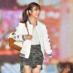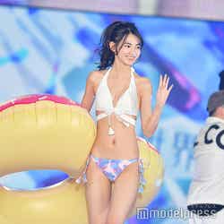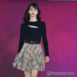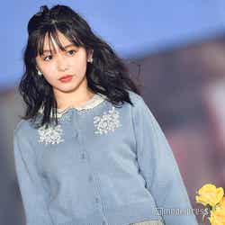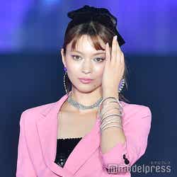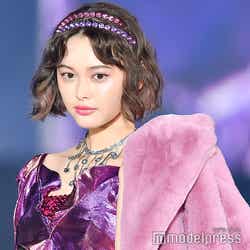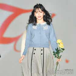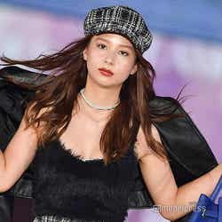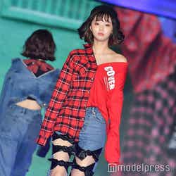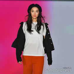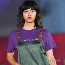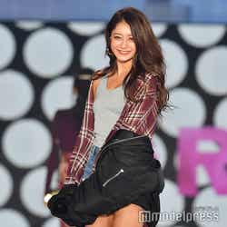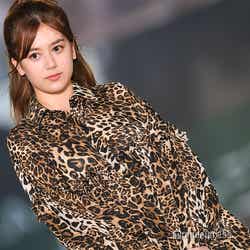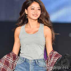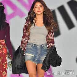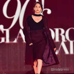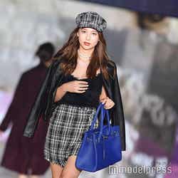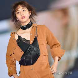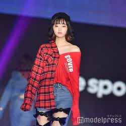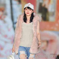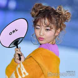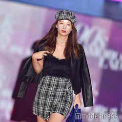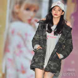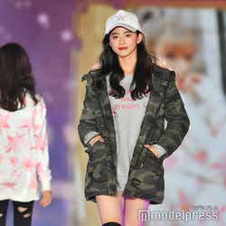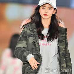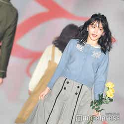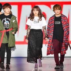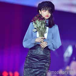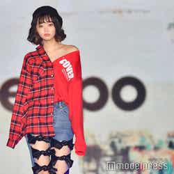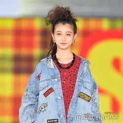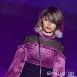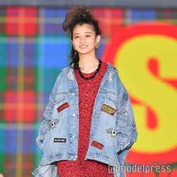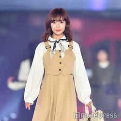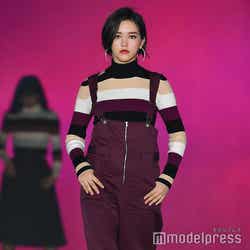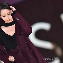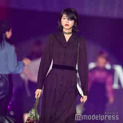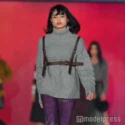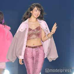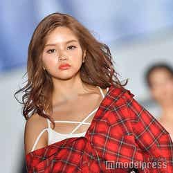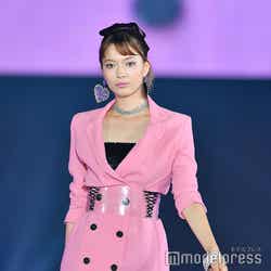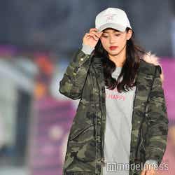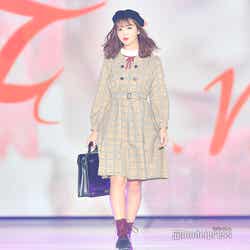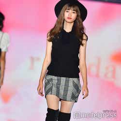 トップバッターは、藤田ニコル。グレンチェックのトレンチ風ワンピースにベレー帽を合わせたガーリーな秋コーデを着こなし、ステージ先端ではファンに投げキス。華やかなオーラで大きな歓声を浴びた。人気モデルがズラリ