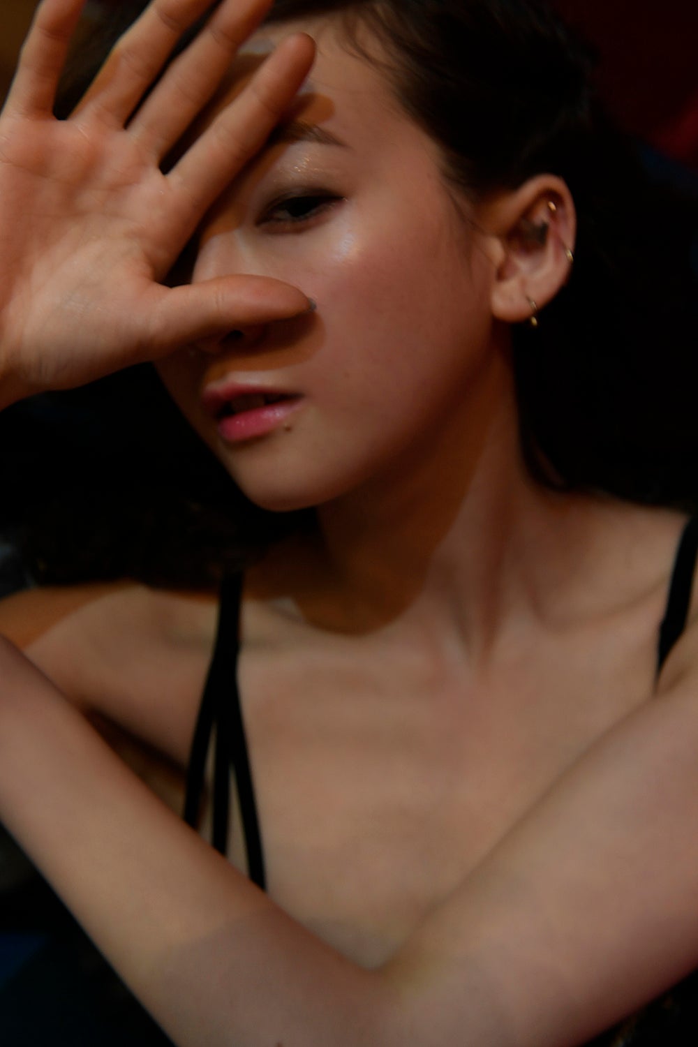 一方、須崎祐次によるシューティングでは、須崎が設定した白・赤・灰・黒・水の5つの世界に入り込み、金子の深い心の中までが引き出された臨場感あふれるカットとなっている。