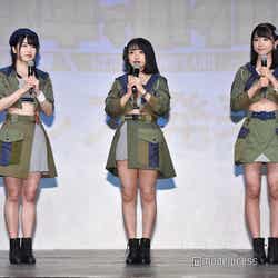 AKB48の横山由依、向井地美音、山内瑞葵が30日、都内で行われたアプリゲームの発売記念プレス向けイベントに、同ゲームの声優を務めたSTU48の門脇実優菜らとともに出席した。