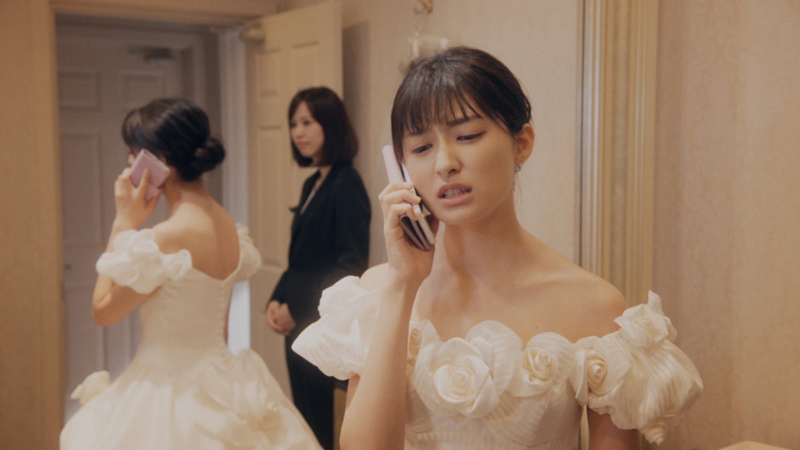 吉川が撮影時の思い出を「ずっと憧れのウエディングドレスを着られて嬉しかったですし、私にピッタリなドレスを選んでいただいて嬉しかったです」と振り返ると、新田の合図で初お披露目となる新TVCM「ふたりの反省会篇」が公開された。