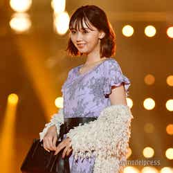 唇を尖らせたり、笑顔を見せたりしながらキュートにランウェイを歩き、会場からは歓声が上がった。