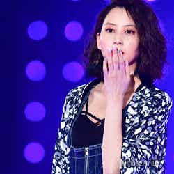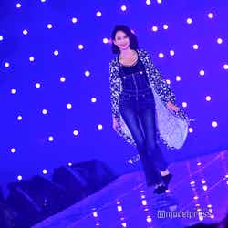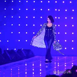 白肌の美しいデコルテを見せながら、ランウェイトップでは投げキッスも披露。時に笑顔も見せ、会場を盛り上げた。