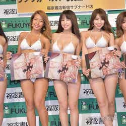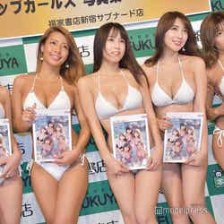 グラビアタレントの犬童美乃梨、橋本梨菜、森咲智美、葉月あや、☆HOSHINOが2日、都内で「リップガールズ G乳乱舞 SPECIAL EDITION」発売記念イベントを開催。報道陣の取材に応じた。