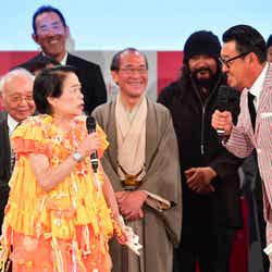 ここで平野アナウンサーから特別上映作品 ワールドプレミア上映作品として、中島貞夫監督の20年ぶりとなる長編最新作「多十郎殉愛記」が紹介。改めて登壇した中島監督に奥山総合プロデューサーがインタビュー。奥山氏が撮影所にいったとき「ちゃんばらだけはちゃんとやったよ」と監督が答えたそう。手応えはという問いかけに「若いバリバリの連中がやってくれるとそれだけで迫力が出るはず」と監督。主演の高良健吾は一ヶ月ほど京都に入り込んで、徹底的に勉強してもらったと振り返った。