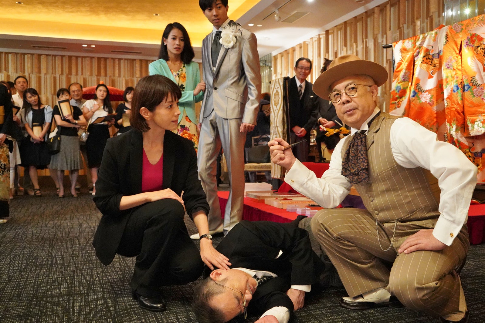 そして宅間孝行、小堺一機らゲスト俳優が沢口扮するマリコと絡む重要な役どころで出演。脚本家・演出家、映画監督としても活躍する宅間は、娘を何者かに誘拐され、犯人の要求に応える形で謎解きイベントに参加する土居垣光成役、そして小堺は、一機事件捜査の舞台となるホテルの謎解きイベントを進行する近藤太一役で出演。生真面目な性格ゆえにイベントの進行を止めてしまうマリコに大慌てになるなど、コミカルな演技も披露する。