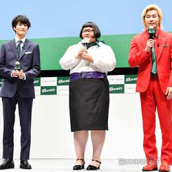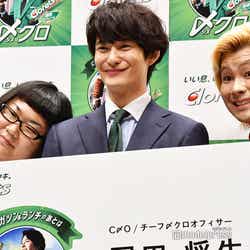 俳優の岡田将生が3日、都内にて開催されたイベントにお笑いコンビ・メイプル超合金のカズレーザーと安藤なつとともに出席した。
