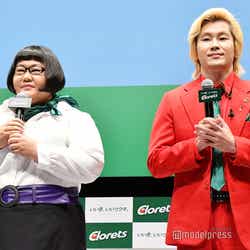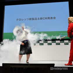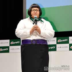 そんな安藤は、口の匂いを処理した後で行われたフォトセッションでは、カメラマンから、メイプル超合金の2人で左右から岡田を囲むように近づいてほしいと依頼されると、岡田にキス顔を向けた。さらに、すました顔で岡田の隣に移動し、かしげた首を岡田の肩に乗せてカメラマンに大サービス。岡田は、安藤のしぐさに爆笑していた。(modelpress編集部)
