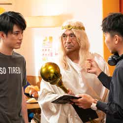 続いて、金髪・長髪というスタイルに光沢のある白い布を纏った姿の松本が登場。2人のシーンの撮影がスタートし、様々なセリフのトーンを試しながら撮影が進んだ。
