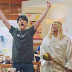 テンションMAXの間宮は、勢いそのままに松本から杖を奪い、スタンドマイクのようにして大きな声で熱唱。テンションが上がって歌う間宮と松本のシュールな反応に、思わず笑ってしまうコミカルな内容となっている。