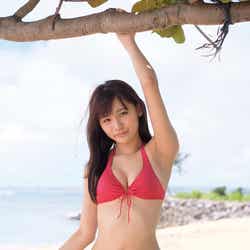 舞台となるグアム、バリの鮮やかな海とのツーショットは注目ポイント。水着で美ボディを余すことなく披露している。(modelpress編集部)