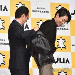 この日のファッションについて吉沢は「レザージャケットとかは寒くなってくると使えると思うんですけど、今日はスウェードで薄手なので、羽織っていてもこの季節でも違和感なく軽くふわっと着られて、今日は授賞式だったのでちょっとドレスアップするようなデザインというところがポイントですね」と紹介すると、岡田は「大人の色気!」とメロメロに。さらに、先日40代に突入した吉沢は「大人のカッコいい男の人って、革製品をどこかしらで楽しんでいるイメージがあるので、僕もちょっとでも皮が似合うように、今日、ヒゲを伸ばしてきたんですよ」とこの日のためにヒゲを伸ばしてきたことを明かし、「より似合う人になっていきたいですね」と語った。