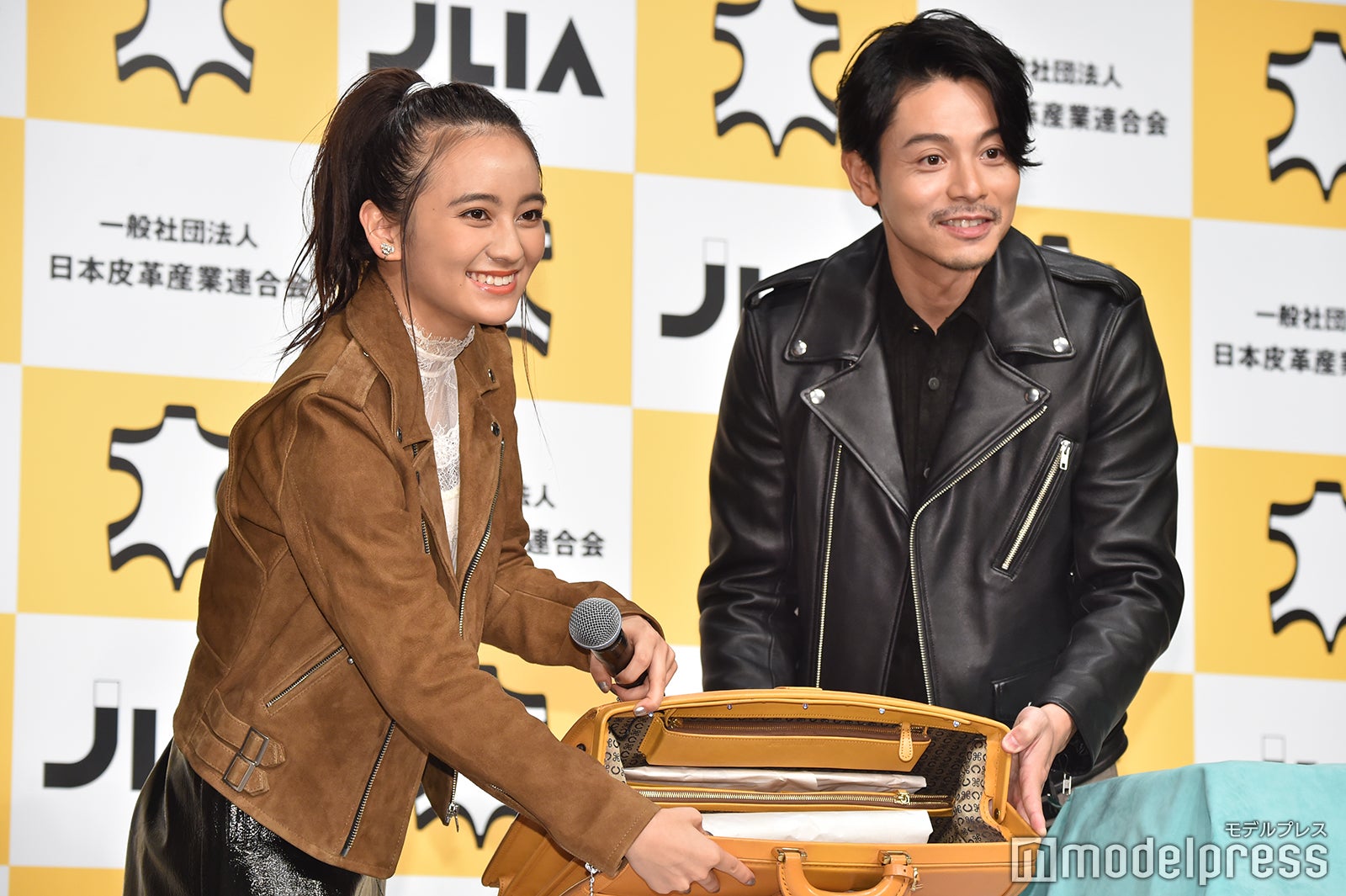 対して岡田は、ミニのレザースカート姿で美脚を披露。「今、私18歳なんですけど、こういうブラウスは女の子らしく、まだ可愛らしくいたいなと思って、でもレザーのスカートで大人の女性を醸し出してみようと思って、靴も黒と白でモノトーンにして、可愛ら刺しさもあるけど、大人っぽさもあるという、18歳という微妙なものを表現できたらなと思ってこういうコーデしました」と説明し、これに吉沢は「岡田さんの若い年代で、ちょっとパキッとしたものが映えるから、可愛らしさがより際立って使い方が上手だなって思いました」と絶賛。今後狙っているレザーグッズを聞かれた岡田は「初めて自分でレザーのものを買ったのはスカートだったんです。その子がだんだん自分に合ってきて、いい具合になってきて、その子も使い続けているんですけど、また新しくスカートを買ってみたいです。その子が短いスカートだったんですけど、今度は長い、ちょっと大人っぽいやつを買ってみたいですね」と笑顔を見せた。(modelpress編集部)