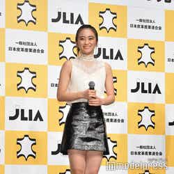 岡田結実、吉沢悠と「ベストレザーニスト2018」受賞 レザーのミニスカで美脚披露