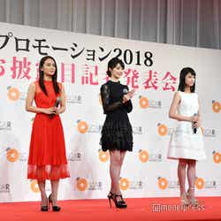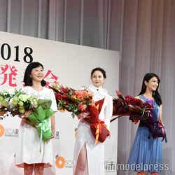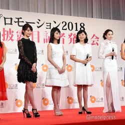 オスカープロモーションの「2018女優宣言お披露目記者発表会」が12日、都内にて開催され、岡田結実、宮本茉由、玉田志織の3名が女優としての意気込みを語った。先輩でモデルの河北麻友子も応援に駆けつけた。