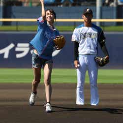 モデルの黒木麗奈が16日、千葉・鎌ヶ谷スタジアムにて行われたイースタンリーグの北海道日本ハムファイターズ対埼玉西武ライオンズ戦で、自身初となる始球式を行った。