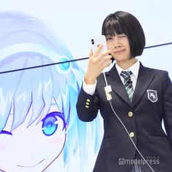 端末を手に持ち、カメラに顔を映すとAIキャラクター・レナに“変身”。松本は「レナです、こんにちは!朝ごはんはフルーツを食べました」とキュートなアニメ声でキャラになりきった。話し声とは全く異なる松本のアニメ声に「“ナイス松本さん”から“さすが松本さん”になりましたね!」と絶賛した神木。司会者の勧めで神木も美少女に声をあてることになると「こんにちは!朝ごはんはまだ何も食べてないよ」と裏声を披露し、会場を喜ばせた。