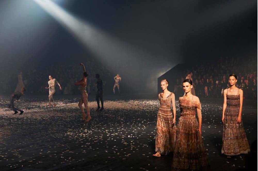 今回、コレクションの核となったのはダンス。才能豊かな振付家の一人であるシャロン・エイアルに着想を得たコレクションは、漆黒の空間に浮かび上がるダンスパフォーマンスとともにルック全編が披露された。