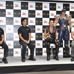 また、自身の息子と娘に「賢士朗」「友里亜」と名付けるなど芸能界でも無類の『北斗の拳』好きとして知られる角田は、『北斗の拳』の魅力を聞かれると「原先生と同い年で、僕が大学生のときに少年ジャンプに『北斗の拳』が連載されて、衝撃的な漫画で、大ファンだった僕は自分の子どもに友里亜と賢士朗って付けたんですけど、その友里亜と賢士朗が、僕もまだ会ったことのなかった原先生とイベントでお会いして、原先生の名刺をもらって帰って来てくれて、僕と原先生との交流がスタートしました。人との縁を含めて、『北斗の拳』は感銘深い作品で」と原氏との出会いのエピソードを紹介。「僕らの世代は漫画世代で、漫画の中に登場するヒーローみたいになりたいって思って、そのヒーローはときに人間離れしていて、本当にはなれないんだけど、なれないからこそ憧れる。『北斗の拳』のケンシロウはまさにそういう存在で、原先生と食事をしながら『僕は原哲夫の描く北斗の世界観を、俺自身が自分の肉体で体現する。それが友情の証だ』ってよく話をしています。だから、僕が目指すのは漫画のような、普通の人から見たらドン引きされるような体を作ることが目標なんです」と笑顔をみせた。