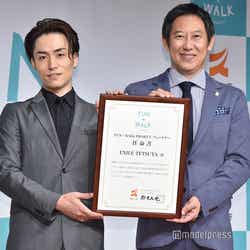 EXILE USAとEXILE TETSUYAが1日、都内で行われた「FUN+WALK月間キックオフイベント」に、鈴木大地スポーツ庁長官、岡崎市ご当地キャラ・オカザえもんらとともに出席した。