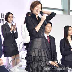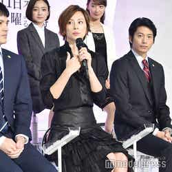 2012年より、全5シリーズに渡り同局の10月期の木曜ドラマを盛り上げてきた「ドクターX~外科医・大門未知子~」だが、今年は米倉を主演に迎えた新ドラマを放送。新しい挑戦に米倉は「久しぶりにスタートの地点から新しいドラマを作るという体験をするので、緊張しています」と心境を明かし「現場に行くのも『今日はどういう話をしよう』と思うけど、最近は穏やかで、キャラクターもまとまってきました」とほっとしたような笑顔を見せた。今作には、「ドクターX」シリーズで共演してきた勝村政信も出演。米倉と初共演のキャストが多い中で、勝村は「白衣を着ていないので。ファッショナブルな服を着ている」と新鮮に感じている様子。そうはいっても、気のしれた間柄のようで、米倉は勝村を「親戚みたい」だと表現して、チームワークの良さを滲ませた。