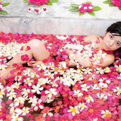 また、初のランジェリー姿での撮影は恥ずかしくなかったか尋ねられると「めちゃめちゃ恥ずかしかったんですけど、撮影していくうちにスタッフさんとも仲良くなれたので、今では楽しかったなって思います」とにっこり。53センチのウエスト“神くびれ”については「もともと自分のくびれが好きで、今回くびれをピックアップしていただいて“神くびれ”という言葉も生まれたんですけど、くびれには自信を持って『見てね』って言えます!」と胸を張った。続けて、くびれを保つためにやっていることを聞かれると「めちゃめちゃ細くなれって念じながらマッサージをしたり(笑)、ラッピング用のリボンで縛ってみたりしたことはあります」と告白し、「ご飯を食べるときも、縛っていたら食べ過ぎないので、自己満です(笑)」とコメント。さらに、撮影をするにあたり何か準備をしたか聞かれると「むしろ増量をして3kg増やしました。写真集を撮影するにあたって、ちょっと細すぎるということで、スタッフさんが『体重を増やせ』ということで、頑張って増量しました」と打ち明けた。