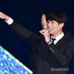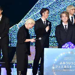 様々なキャラクターの王子たちが王子の中の王子である“伝説の王子”を目指しバトルする同作。集まった約1500名のファンに向け、まずは片寄が「屋外のイベントということで天気も心配だったんですけれども、皆さんのおかげで、そして王子たちのおかげで素敵なイベントを迎えることができて嬉しいです」と挨拶。点灯式では、高さ25mのジュエリーマウンテンの“光の山”が輝くと、「素敵でもありかっこよくもあり、感動です」と感激していた。