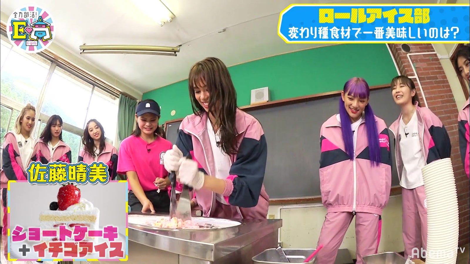 また、変わり種食材とアイスを混ぜて、美味しいロールアイスを作る企画にトライ。佐藤晴美のショートケーキや、YURINOのプリンなど無難な食材を引き当てたラッキーなメンバーとは対照的に、わさびを引き当てた藤井夏恋、納豆を引き当てた楓、ウニを引き当てたSAYAKAはショックを受けた様子。そして、佐藤は「いらっしゃいませー!」と店員のマネをしながら慣れた手つきでショートケーキとイチゴ味のアイスを混ぜ、綺麗なロールアイスを作ることに成功。実食後、「うまE」か「うまくなE」かでメンバーからのジャッジを受けると満場一致で「うまE」の札が上がり、佐藤は満面の笑みを浮かべた。