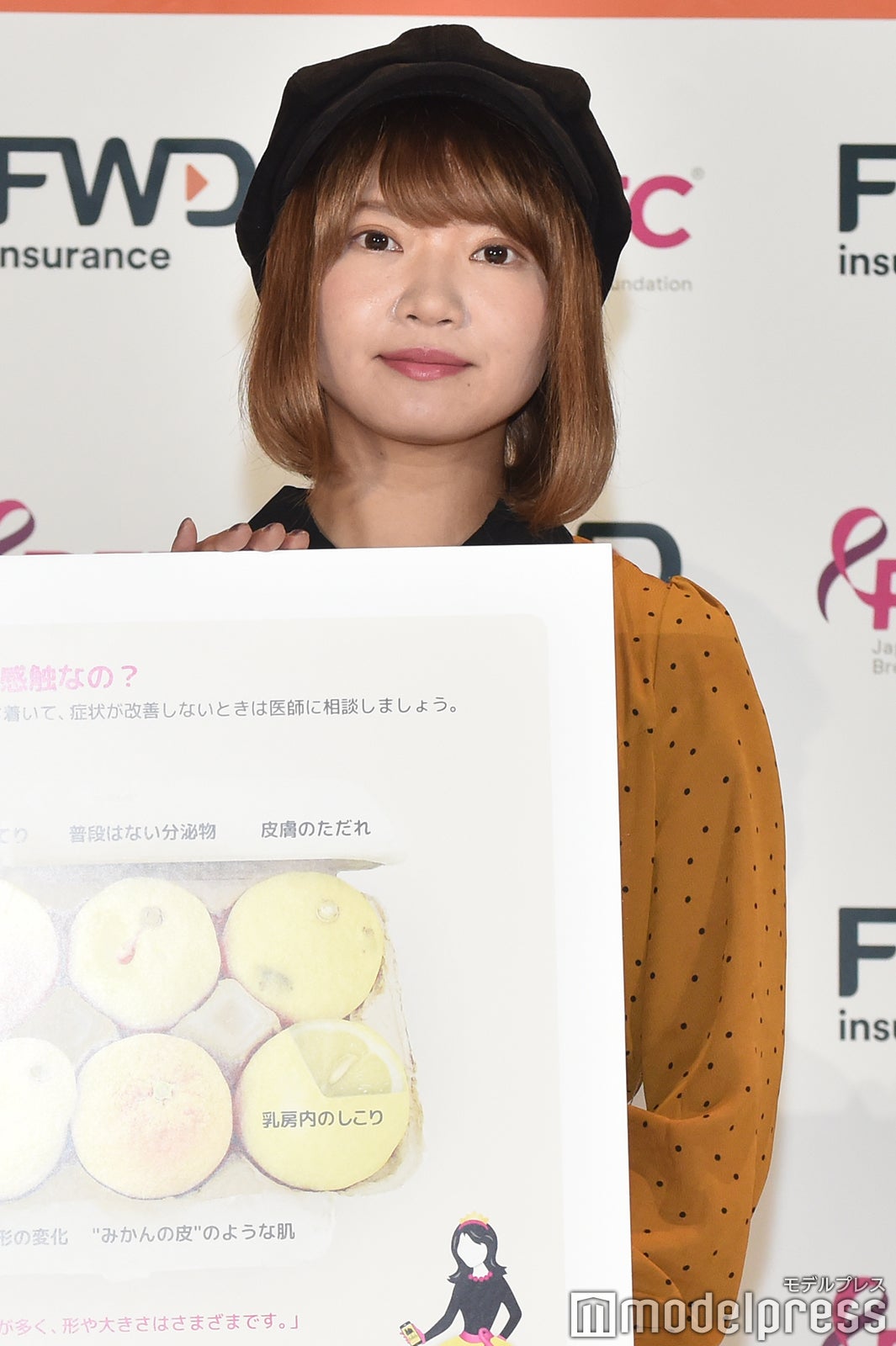 乳がん闘病中の元SKE48の矢方美紀が11日、都内で行われた乳がんセミナー「Know your Lemons」に、NPO法人ラン・フォー・ザ・キュア・ファンデーション(RFTC Japan:乳がん早期発見啓発活動推進協議会)の講師・鈴木咲子マリア氏とともに出席。イベント前に報道陣の囲み取材に応じた。