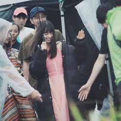 撮影が行われた日は、あいにくの大雨。そんな中、齋藤は早朝7時に「よろしくお願いします!」と元気よくピンク色のチュールワンピース姿で登場。どんよりとした天気とは裏腹に、スタッフ1人ひとりに笑顔で挨拶をしながら、爽やかに現場入りした齋藤の姿に「一気に現場が明るくなったね!」と話すスタッフもいた。また、屋外の撮影だったため、雨が強まると撮影は一時中断。雨がなかなか止まず、30分以上待つ場面もあったが、そんな時でも監督の指示を真剣なまなざしで受け止め、周りのスタッフにも演技の相談しながら“まっすぐ”撮影に取り組んでいた齋藤だった。