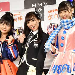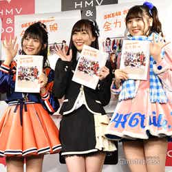 SKE48の須田亜香里、小畑優奈、菅原茉椰が17日、都内にて、「SKE48 衣装図鑑 全力制服」刊行記念イベントを開催。囲み取材に出席した。
