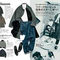 同誌初登場となる相葉は、秋冬注目のコートと共に表紙も飾る。普段は機能優先でアウターを選ぶという相葉。「コートを着るのはものすごく新鮮ですね」と何度か似たような感想を口にしながらも、数種類のトラッドな膝丈コートを魅力的に着こなした。「かっちりとした形とかきれいな色のコートは自分の選択肢になかったものなので、勉強になったし撮影も楽しかったです」と、撮影中には、どんなシチュエーションでコートを着るかについて考えたそうだ。