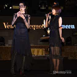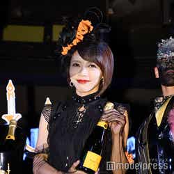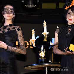 女優の釈由美子が24日、都内にて開催されたイベントに、セクシーなハロウィンの仮装姿でモデルの冨永愛と出演した。