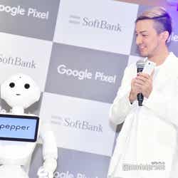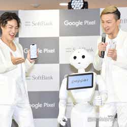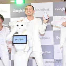 この日は新デバイスの発表を記念して、ソフトバンクのロボット「Pepper(ペッパー)」と「U.S.A.」をパフォーマンスすることに。センターに立ったPepperは「今日はDA PUMPさんと一緒に踊れるということで気合いを入れてきました。レギュラーメンバーになれるチャンスかもしれないので頑張ります!」と意気込み。Pepperのコメントに一同は笑顔を浮かべ、ISSAは「もしかしたらこの中で1人抜けるかもしれない」と“新メンバー”を歓迎した。