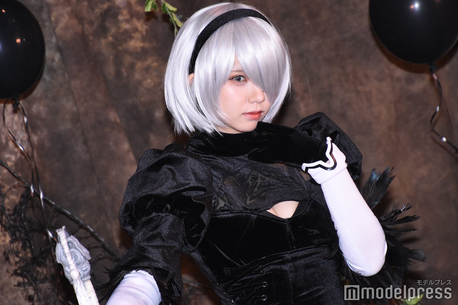 えなこは、撮影会第3部で「NieR:Automata(ニーアオートマタ)」に登場するアンドロイドのキャラクター「2B」のコスプレを披露。「横のスカートのスリットが気に入っています。スカートの下に穿いているレオタードは原作通りすごくハイレグといいますか、Tバッグ状態。過去最高に頑張っていると思うくらい再現にこだわりました」とアピールした。(modelpress編集部)
