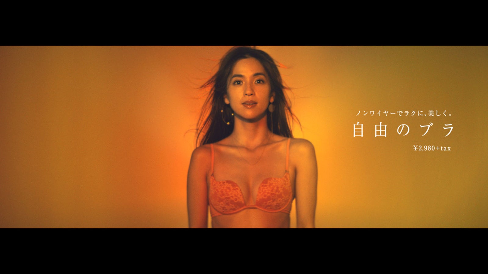 新CMのコンセプトは「未来の私へ。」。今までのブラジャーの固定概念から解放され自由を手に入れることで、未来の私を美しくする、という意味が込められたコンセプトを、中村が表現している。