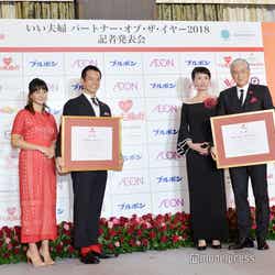 そのほか、結婚31周年を迎える陣内孝則・陣内恵理子夫妻も登壇。「いい夫婦 パートナー・オブ・ザ・イヤー」とは、毎年、一般応募のアンケートと社会背景を基に「いい夫婦の日」をすすめる会が選出する理想の有名人夫婦を発表。陣内夫妻は、芸能界きってのおしどり夫婦として知られ、「結婚30年経っても奥様の誕生日に年の数のバラの花を贈るなど素敵な夫婦」といった多くの一般からの声を受け、選出。一方庄司・藤本夫妻は、2人の子どもを育て素敵な家庭を築いている夫婦で、今年は結婚10周年目という記念の年を迎え、仲睦まじい家族の様子から選出された。(modelpress編集部)