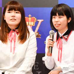 ガンバレルーヤのよしこは、「決勝進出できてすごく嬉しいです。私たちは巷で顔だけと思われがちなので、しっかりネタもできるのだということをみなさんに知って頂きたいです」と、笑いを誘いつつ意気込みを言葉に。まひるは「絶対優勝するぞ!」と拳を握っていた。